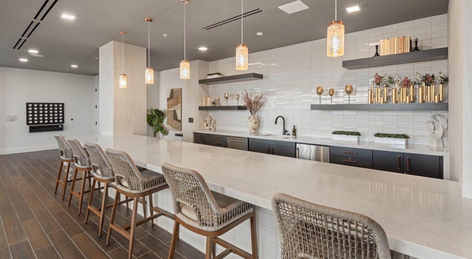 Elevate your everyday with an unmatched array of luxury amenities designed to inspire and enhance your life. At our luxury high rise apartments in Charlotte, NC, residents enjoy exclusive access to a rooftop pool with private cabanas, a state-of-the-art fitness center featuring Peloton bikes and live virtual classes, and a beautifully landscaped courtyard for quiet relaxation. Whether you're hosting in the Club Room or lounging on the rooftop terrace, every space is crafted for comfort and connection. With concierge services, premium on-site retail, and high-speed Wi-Fi throughout the community, Overlook is where convenience and luxury effortlessly converge.